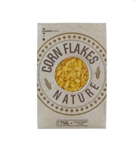 Maïs 92%, sucre, sel, extrait de malt d’orge, vitamines : vitamine E, thiamine (B1), riboflavine (B2), niacine (B3), vitamine B6, acide folique (B9), vitamine B12, acide pantothénique (B5), diphosphate ferrique.